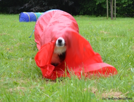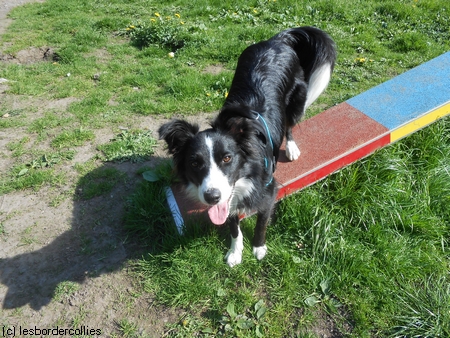Mais à cet âge-là, il ne pourra pas encore faire certains obstacles (la palissade) car il faut attendre + ou - 15 mois chez un border collie pour qu'il soit complètement formé.